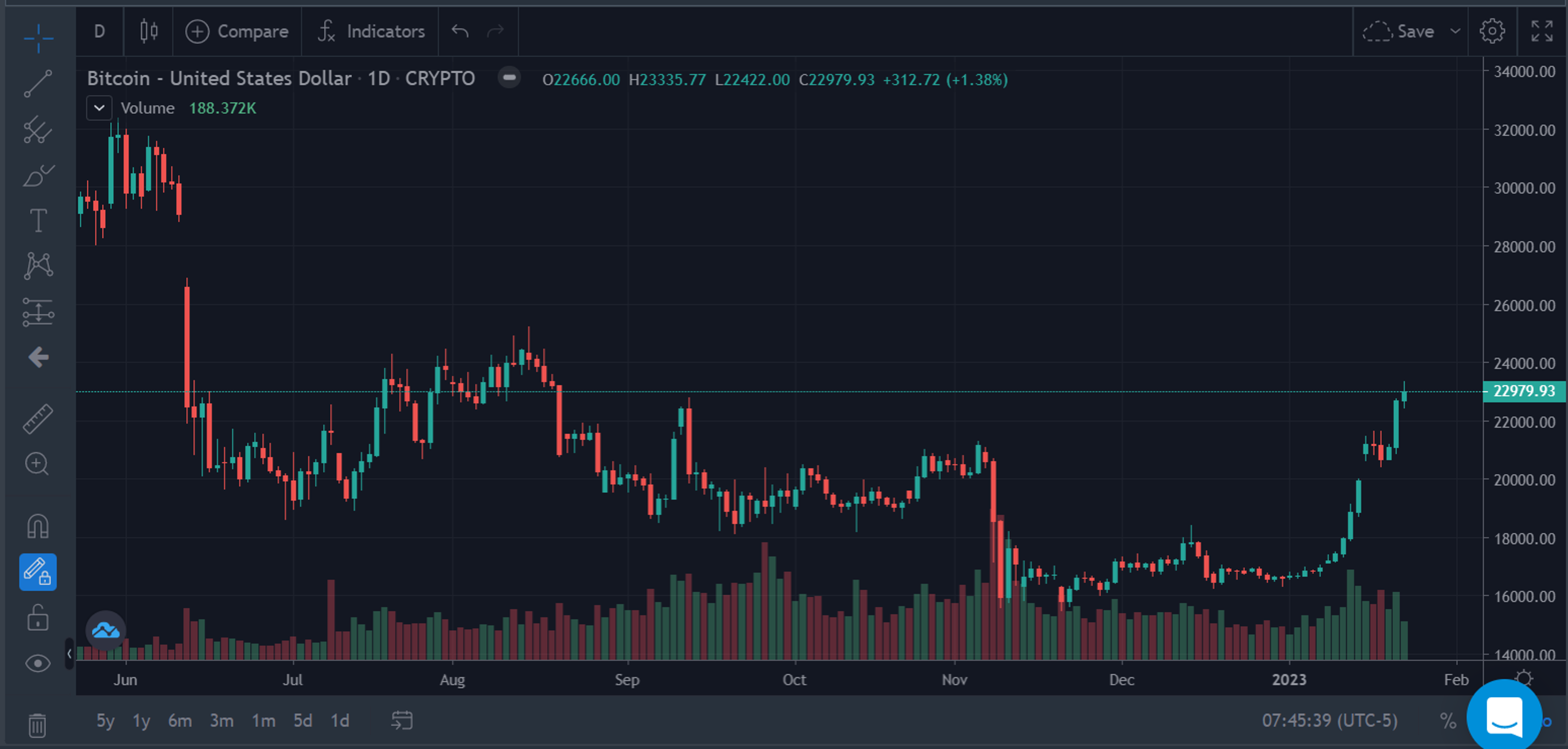 What Happened: Bitcoin crossed the psychological threshold of $23,000 intraday on Saturday for the first time since mid-August 2022. At last check, the apex crypto was rallying 9.20% to $23,032.77, according to Benzinga Pro data.